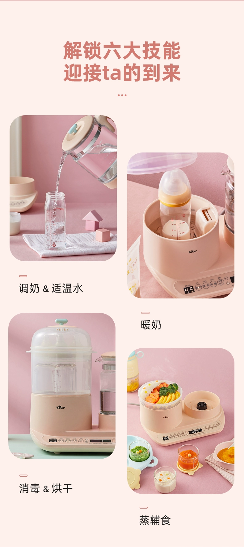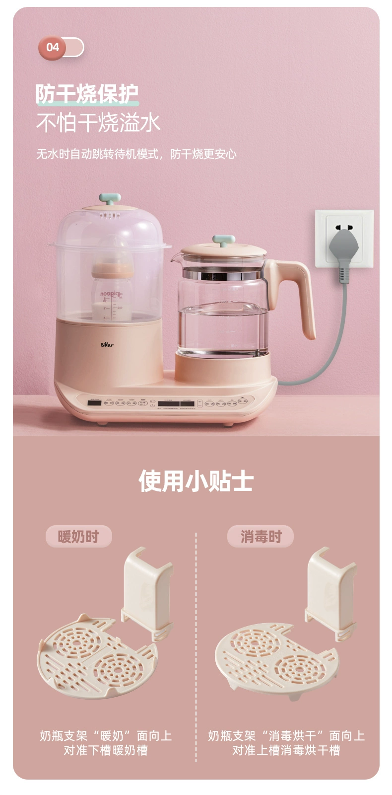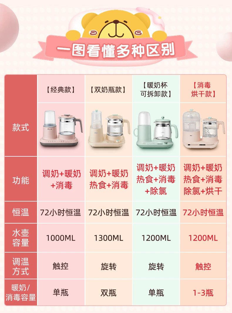 Chauffe lait, bouilloire stérilisateur de biberons avec séchage 3 en 1